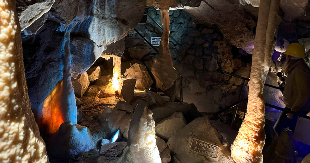 Red Arrow Emergency Lighting at Stump Cross Caverns.
